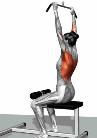 抓握拉杆向下拉至上胸部,还原。重复上述动作。