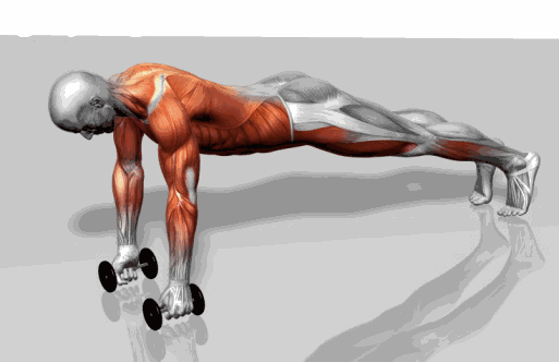 保持身体的姿势,屈肘,使身体靠近地面,向上推举身体至两臂伸直,还原。重复上述动作。