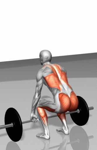 通过伸膝关节和髋关节,联合背部、髋部和大腿的力量,上提杠铃,还原。重复上述动作。