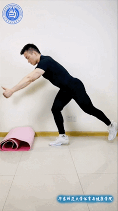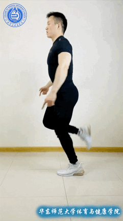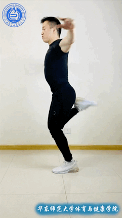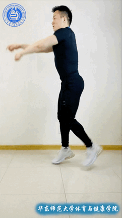 绕肩与后踢腿的配合,不仅可以充分活动肩关节及增加胸部柔韧性,也可以锻炼下肢肌群运动。