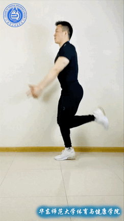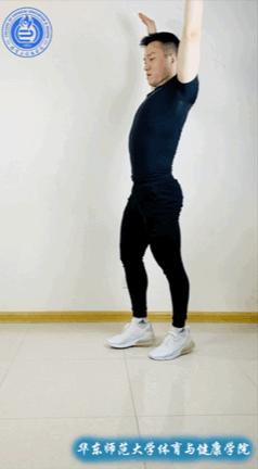 过肩举与后踢腿的配合,可以充分调动上肢与下肢肌群运动,注意动作节奏性,充分伸展身体,保持呼吸匀速。
