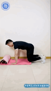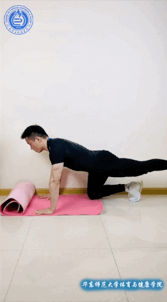 手掌与前脚掌作为支撑,膝盖触地,头、背、臀呈一条直线,吸气往后伸腿,吐气往前收腿,保持身体稳定。