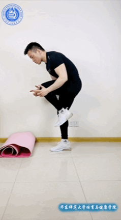 加强单腿支撑稳定,膝盖与脚尖的方向应一致,头、背、臀保持一条直线,腹部收紧,手臂与腿部伸直,练习速度不应太快,更应注意稳定性。