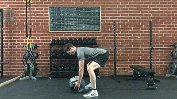 随着举起药球的同时,你会想要屏住呼吸,但一定要蹲起后呼气,然后在重复这个过程。
