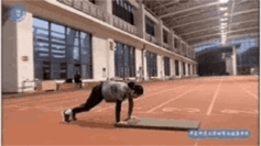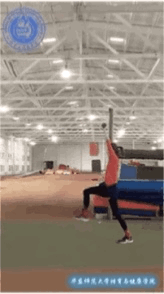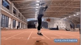 2、手臂伸直利用半蹲时大腿和臀部的肌肉弹性跳起,只有起跳的瞬间发力。