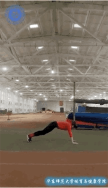 3、在撑起的同时,双腿向前跳回起始位置,然后向上站立并垂直跳跃。