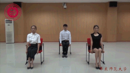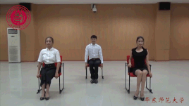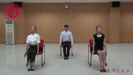1—4拍:左手从体前向右打开,左手扶椅背,右手搭左膝,上体左转,头部转向左,胸腰、肩背拉伸。