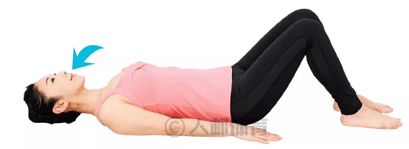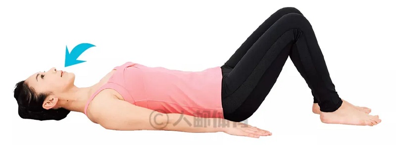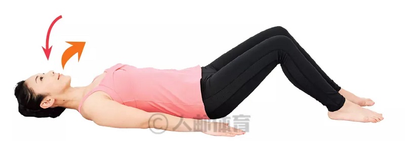 配合呼吸,步骤4 → 5 重复10次。10 次完成以后,呼气的同时头部慢慢回落。