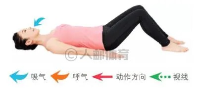 呼气的同时,头顶离开地面,心窝部以上抬起至最高处后吸气。练习这个动作时,有意识地让椎骨逐节弯曲。