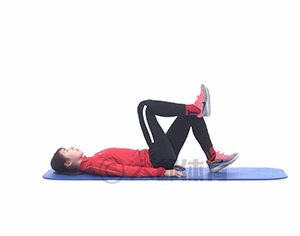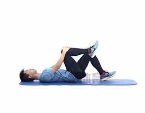 1.身体呈仰卧姿势,一侧腿屈膝,脚跟触地支撑。另一侧腿屈髋屈膝抬起,双手抱住非支撑腿的膝部。