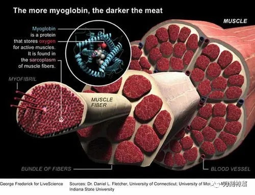 见过烤羊腿的人都知道,一块肌肉上面是包有一层膜的,此谓肌外膜;里面包裹有一束一束的肌肉,每一束上面仍然包有一层膜;再往里,就成了微细结构肌纤维,是构成肌肉的基本结构单位,同样,肌纤维上面也包有一层膜,叫肌内膜。