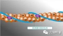 粗肌丝又由一种长得像根豆芽的肌球蛋白分子组成。一条粗肌丝可能有200多个这样的豆芽,这些豆芽的头部按一定的角度规律排列在一起,头部形成横桥。