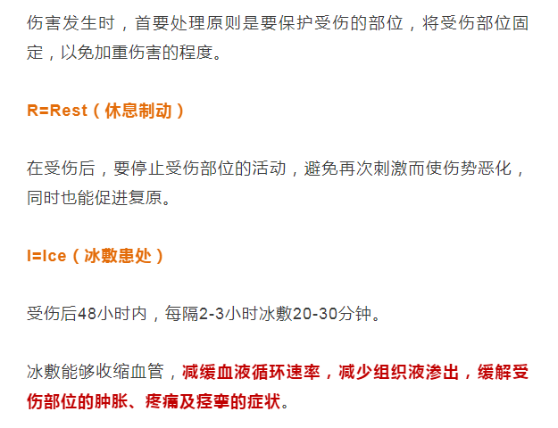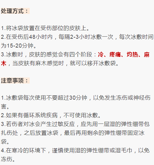 早期冷处理:立即停止运动, 24小时内用冰袋或冷水进行冷敷。