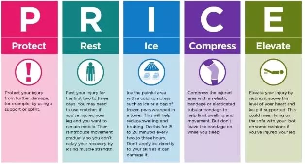 “PRICE原则”是目前专业人员广泛认可的急性损伤操作处理原则,最佳处理时间是在24到48小时内,处理的原则有五个步骤: