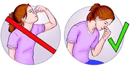 错误处理:仰头让血流入口腔(易误吸入气管)。