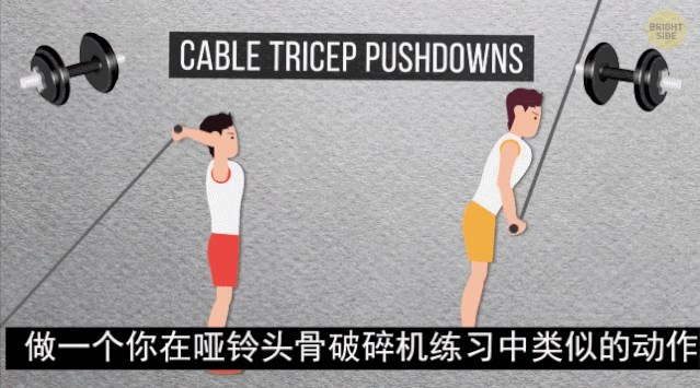你可以用缆绳机做不同的动作,比如背对它,做一个你在哑铃头骨破碎机练习中类似的动作。
