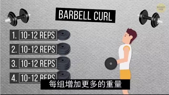 你需要使用渐进式超负荷方法,这意味着你每做一组运动,都要增加更多的重量和强度。