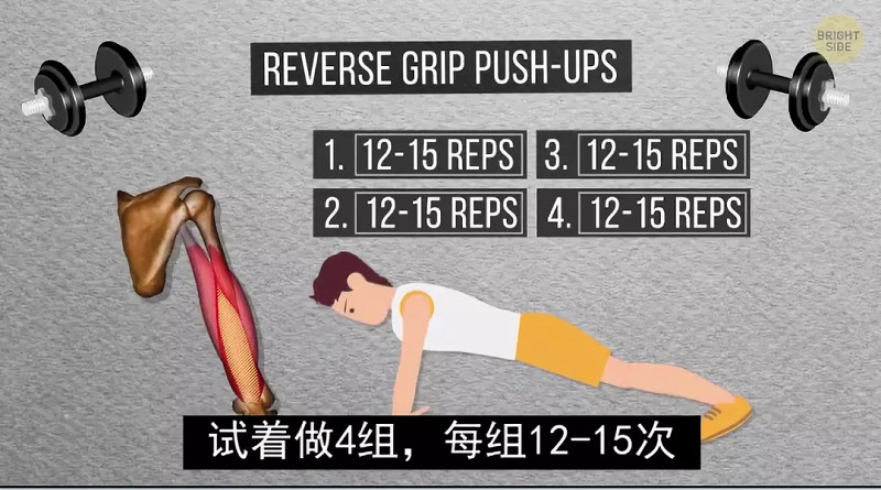 试着做4组,每组12-15次,或者努力达到这个目标。