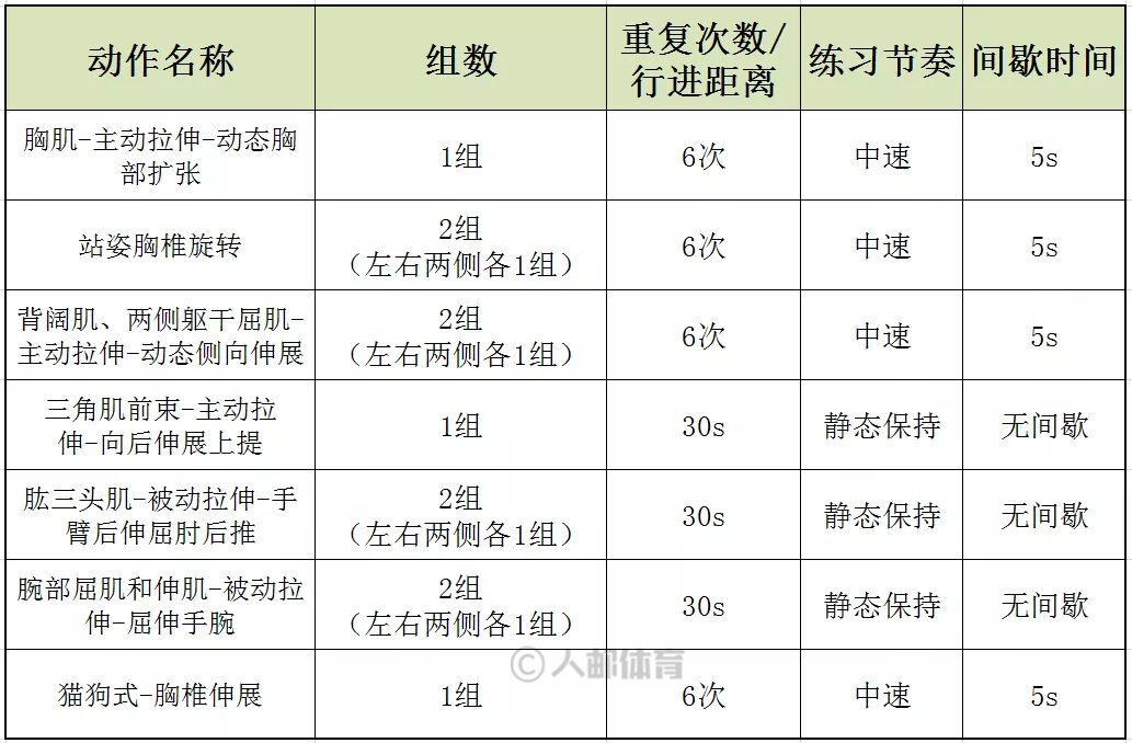 下面这些动作能帮助孩子们在进行各种体育活动前对主要肌肉群进行激活和预热,减少肌肉黏滞,增加肩、肘、腕,以及髋、膝、踝六大关节的活动范围,降低运动损伤风险;或在体育活动之后对肌肉进行拉伸放松,促进机体代谢,恢复肌肉弹性。