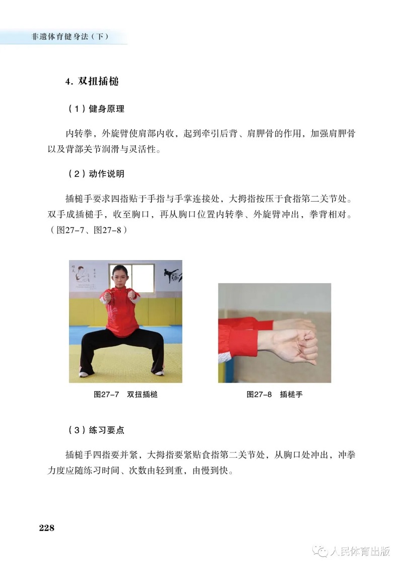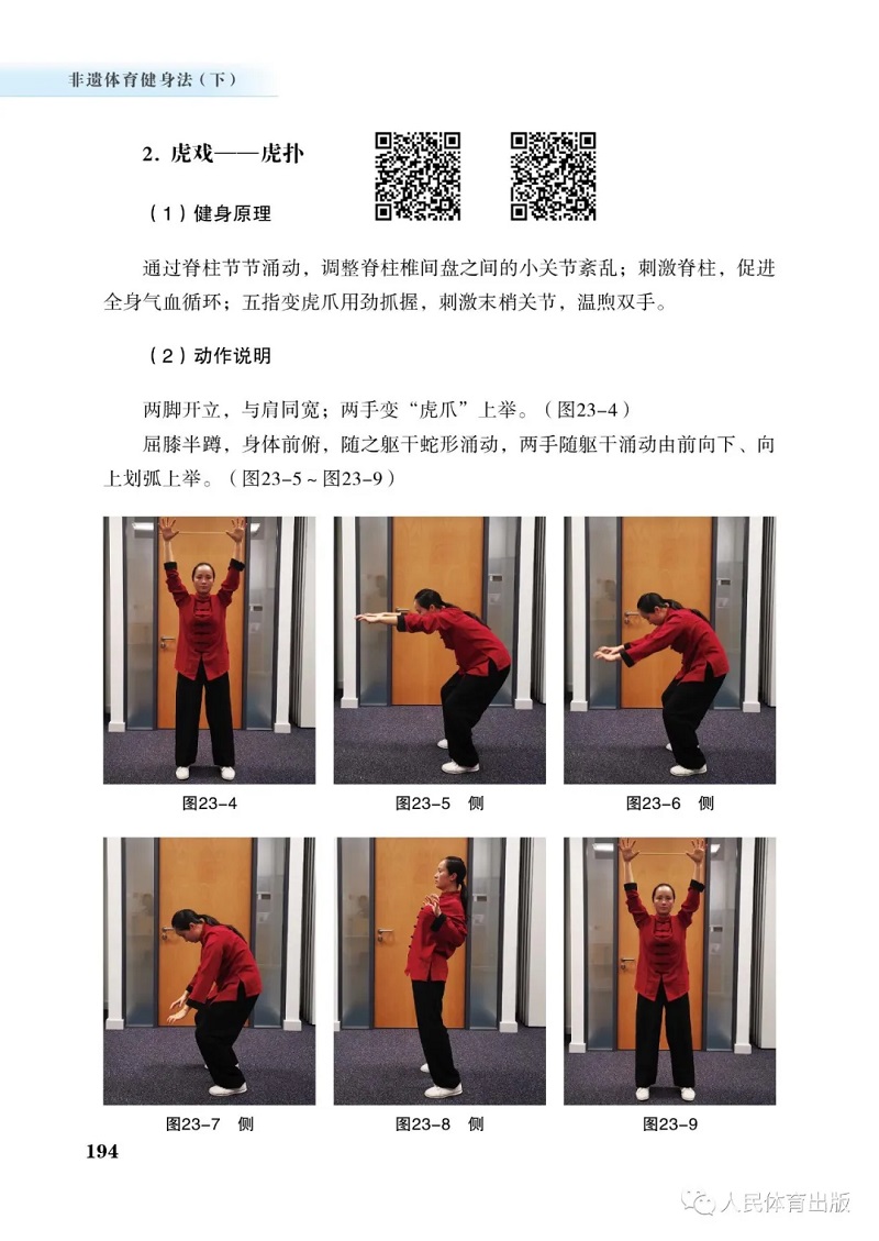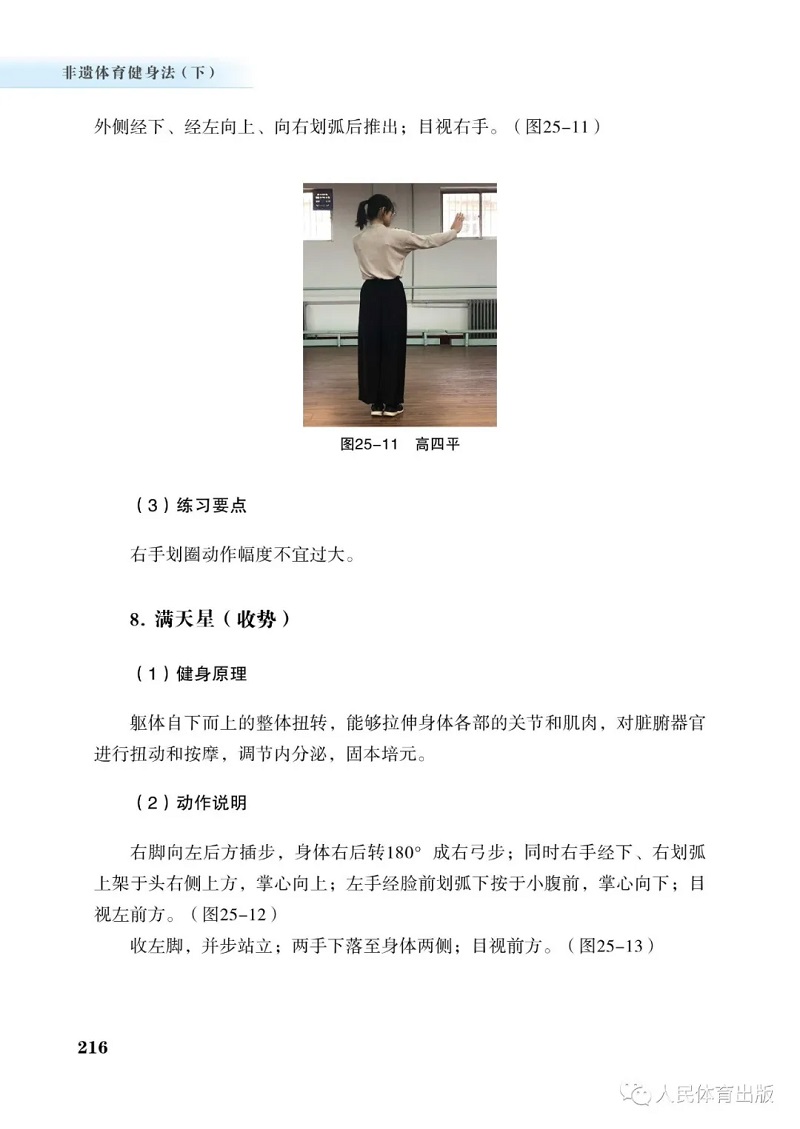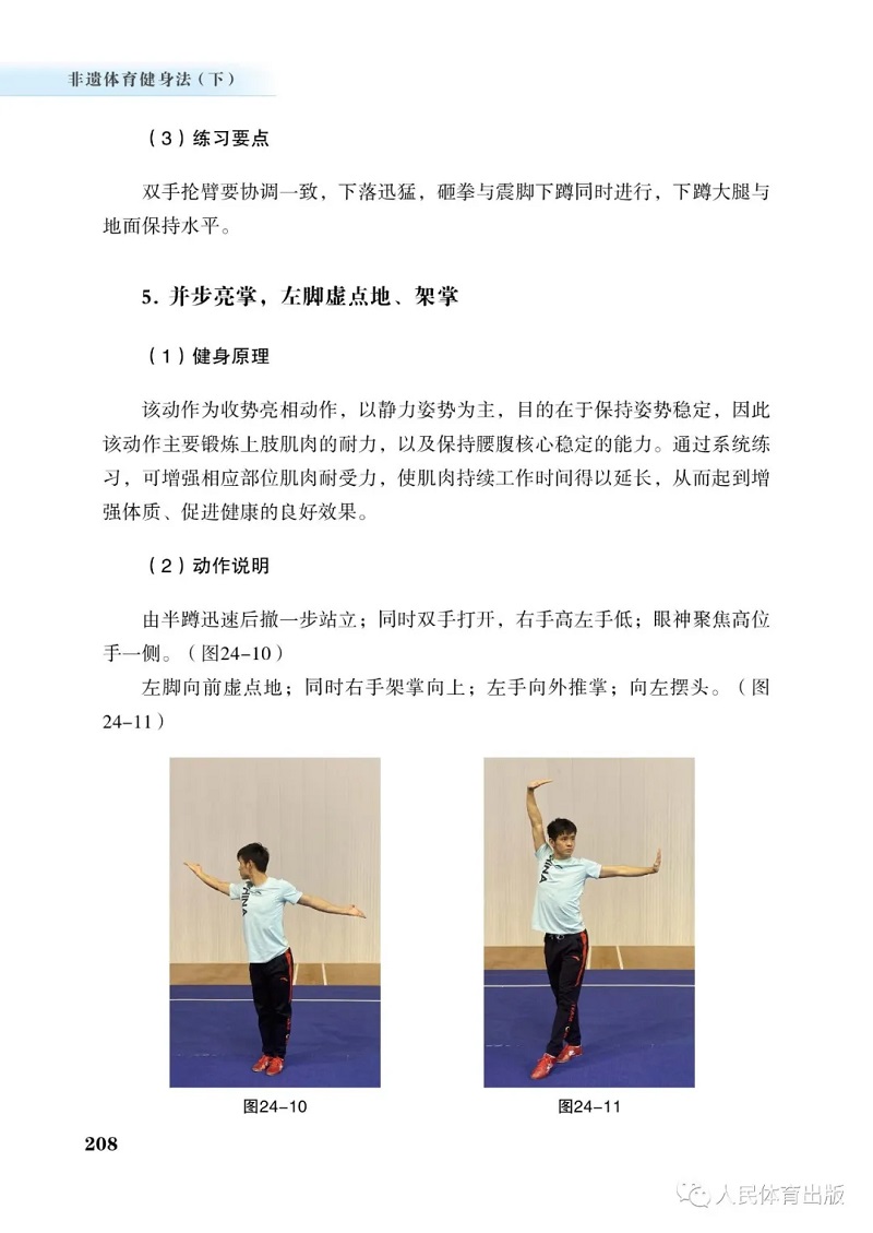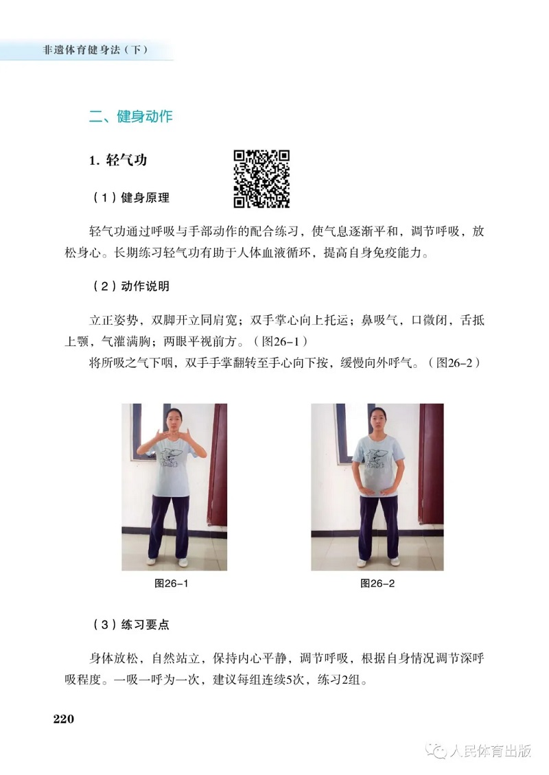 《非遗体育健身法》精选出太极拳、形意拳、八卦掌、通背拳、八极拳、少林拳、鹰爪翻子拳、华佗五禽戏等27个项目,融合体育科学健身原理,“研究、整理、编创”三结合,以文字描述、图片示范、视频演练的形式,提供了丰富多元的武术与民族传统体育健身方法
