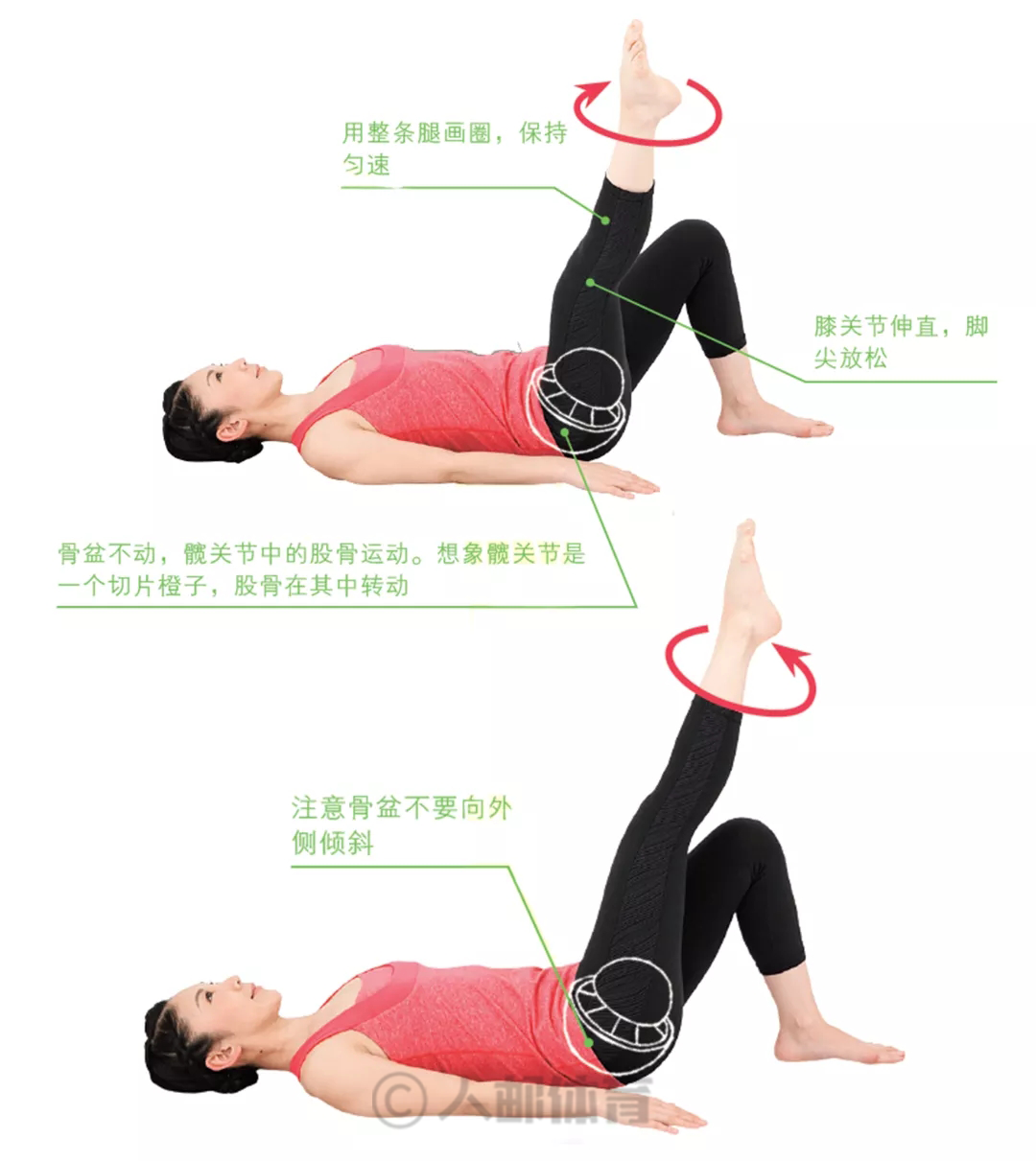 运用腹肌和髋关节转动整个腿部,让髋关节更加灵活,骨盆更加稳定。美腿效果和提臀效果同样值得期待。