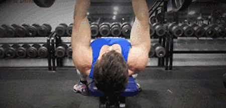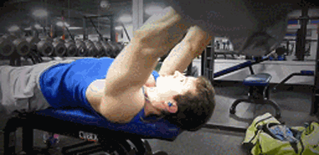 仰卧在凳上双手窄握曲柄杠铃