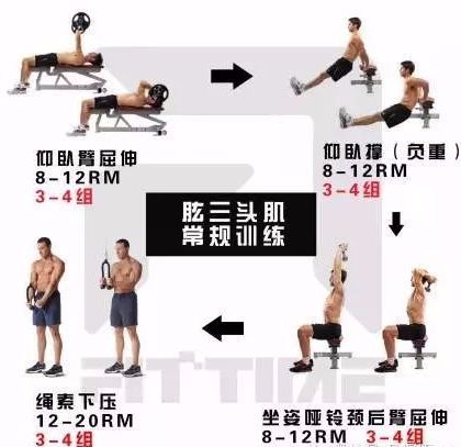 针对肱三头肌围度的训练安排还可以这样做: