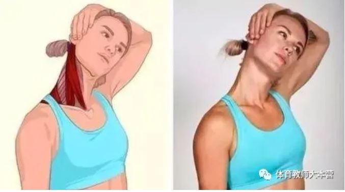 动作要领:坐立或站立,然后左手去摸右耳朵并向左边尽量倾斜坚持30s,换相反的方向重复练习。练习3-5组。
