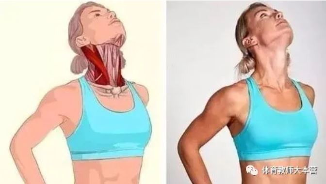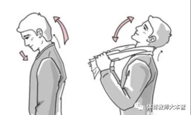 动作要领:身体挺直,肩颈保持自然状态。下巴靠近胸口,感觉伸展到后颈部的肌肉。头尽量前方下压,制造出双下巴的效果,保持7秒钟。然后再用手拉住毛巾尾端,利用对抗毛巾被拉扯的力量,使颈部、肩膀都往后仰,保持7秒钟,如此重复练习3-5组。