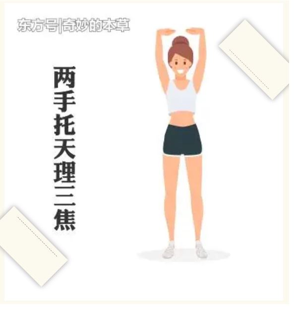 好处:三焦是人身体的通道,通五脏六腑,这个动作可以祛除雨水天气带来的寒湿浊气,提升人体阳气。