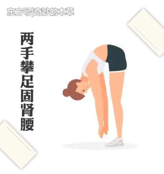 (2)上半身往左前方转动,头微微下垂,随着上半身的转动做圆形摆动。然后上半身转回右前方,重复此动作。