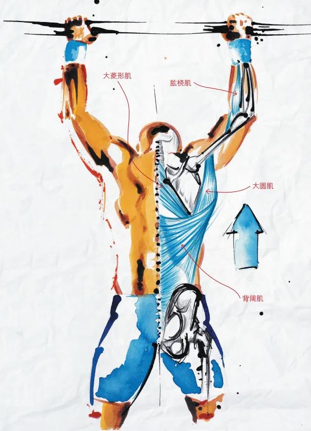 该练习要求一侧拉动,同时另一只手臂保持伸直。伸直的手臂在侧面产生一个推动力,另一只手臂进行引体向上。为保证练习有效,身体需要保持稳定,不要出现任何摇摆动作。