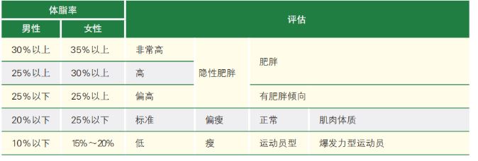 体脂率评估表: