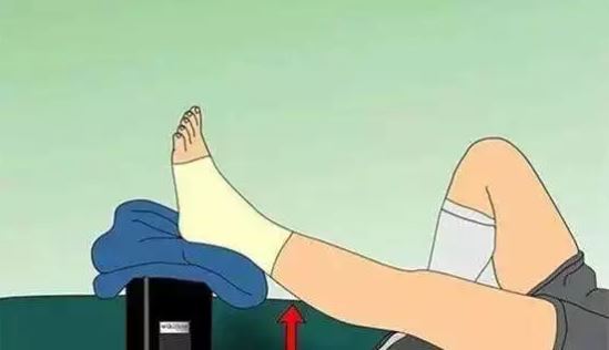 受伤的基本原则,将受伤肢体抬高,超过心脏水平,能有效降低水肿和血肿。