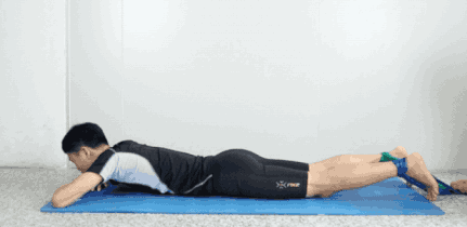 ①俯卧折腿拉皮带或胶管(阻力强度要在健康状况时的肌肉强度上大幅降低)。