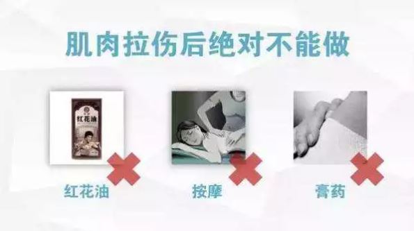 所以肌肉拉伤后,按摩、红花油,或者贴活血膏药都是彻彻底底错的哦!