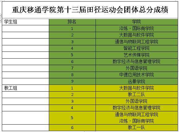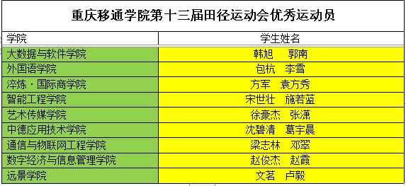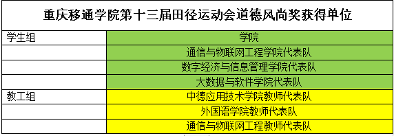 重庆移通学院第十三届田径运动会道德风尚奖获得单位