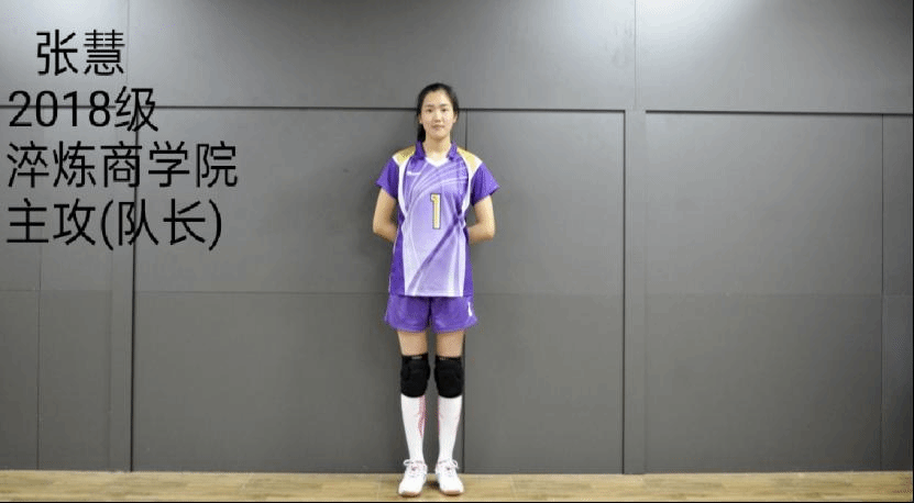 校女子排球队张慧,2018级淬炼商学院学生,校女排队长。2018年,加入排球队。加入排球队到现在,快3年了,时间如白驹过隙,转瞬即逝,曾经球场稚嫩的小学妹,如今也在岁月的磨炼下成长为可以带领小学妹的老学姐了。3年的校队训练里,她始终保持初心,给自己制定更高的目标,想去参加市级的比赛,磨练自己的技术,开拓自己的眼界,也正是这样的原因不断支撑着自己在面对训练瓶颈期时都能顺利度过。