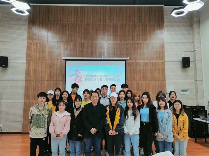 4月20日,王尚傲老师受邀参加外国语学院啦啦操队文化建设暨啦啦操排舞大赛赛前队员会,王尚傲老师对队员们的啦啦操与排舞套路进行了指导与建议。鼓励队伍建设注重团队凝聚力培养并预祝同学们在比赛中取得优异成绩。