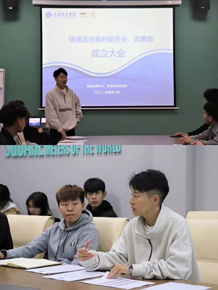 4月1日,罗诗艺、江晓羽两位老师策划组织召开移通学院裁判委员会、竞赛部成立大会,让我们的校园学生裁判员有更专业的学习机会、合理的培养制度,促使足球竞赛办的得更加规范。
