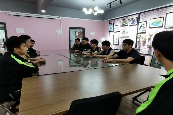 4月28日下午,全队观看了4月22日在重庆商业职业学院面对专科组全国冠军电子工程学院的比赛录像,并在江晓羽教练的带领下对整场比赛进行了复盘,总结了比赛失利的原因,反思了自己与团队存在的问题,明确了后期训练的主要方向。