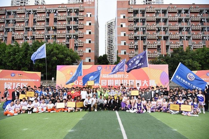4月28日,由球类教研组王尚傲、张朋中老师与体育活动部共同举办的第八届校园体育节之2021年校园啦啦操排舞大赛在校运动场拉开帷幕,本次共计9支代表队200余人参赛,比赛现场氛围高涨,运动员们用热情演绎青春,把青春的积极向上演绎的淋漓尽致。