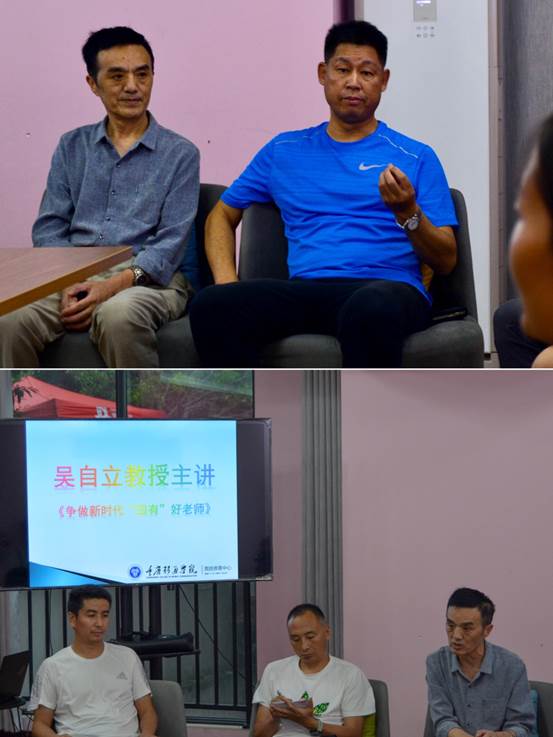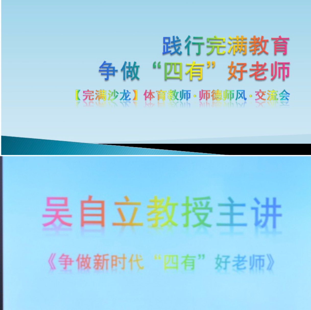 6月15日晚7时30分,竞技体育中心于爱莲书院艺术交流室举办了主题为《践行完满教育·争做“四有”好老师》的体育教师师德师风沙龙会。本次沙龙由竞技体育中心副主任刘玉林主持,特别邀请校级教学督导吴自立教授主讲,竞技体育中心全体教师与教练出席沙龙。