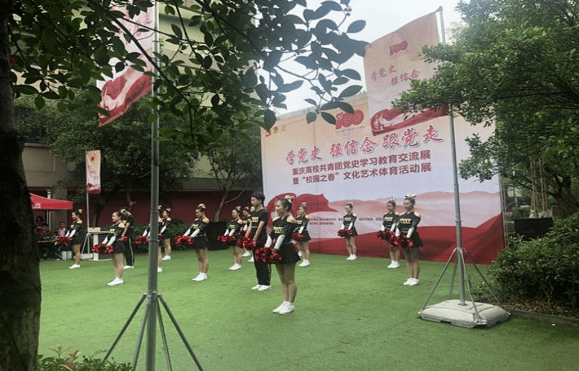 5月25日,Twinkle啦啦操排舞队16名队员为“学党史、强信念、跟党走”重庆高校共青团党史学习教育交流展暨“校园之春”文化艺术体育活动展带来了活力满满的啦啦操开场舞表演,闪耀的红色花球更是为活动增添了一抹色彩,赢得现场热烈的掌声。