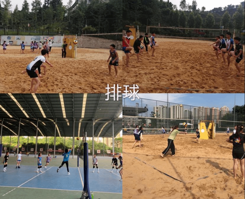 女排5月的训练主要以沙滩排球训练为主,室内排球训练为辅,练习基本技术和身体素质训练。沙排的训练目的是备战下学期9月在我校举办的2021重庆市大学生沙滩排球比赛。训练中,烈日炎炎、沙子烫脚,但是教练为了让队员们适应沙滩排球比赛时的各种天气状况,还是顶着高温进行体能训练,技术训练对抗练习等。