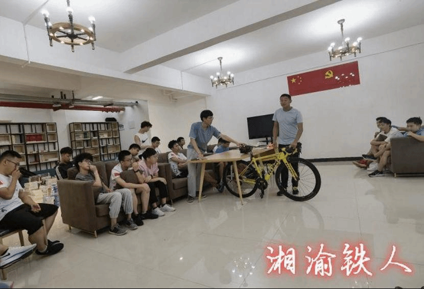 校铁人三项挑战队于2021年5月17日开展了进书院活动,本次活动郑万达教练为大家讲解了骑车的技术,首先要带好头盔,骑车时候腿部的发力,如何能快速加速,拐弯减速等问题,并希望大家要有坚持不懈的意志,拥有铁人精神。