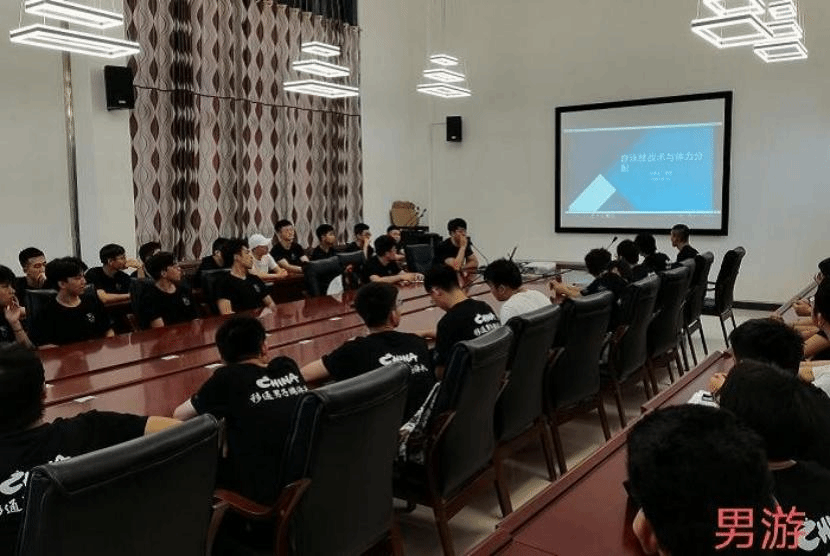 5月14日男子泳队理论课在梅若会议厅开展。抛出“游泳战术”让队员们讨论,分析面对游泳的中长距离该如何分配体力等问题,目的为了让大家在训练和比赛中更好掌握节奏和速度,达到有效提升竞技体育水平的效果。