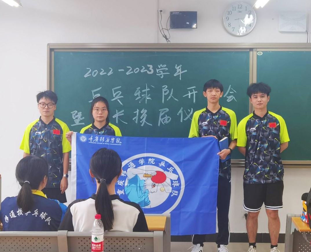 2022年9月21日下午两点,重庆移通学院校乒乓球队在竹逸B102举行了开训会暨队长换届仪式。本次队长换届仪式由吴秀云老师主持,参会人员有校乒乓球队教练甘素老师和吴秀云老师以及校队全体成员。