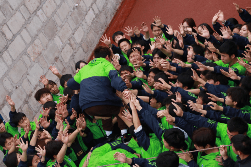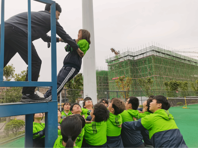 在坚持中成就自己,在汗水中理解团队。所谓“积力所举,则无不胜;众智所为,则无不成”,在最后的项目中三个班级同心协力越过1.75米高的长绳,更加体现了团结精神。在过程中纵然也曾经历失败,但坚持真的很美,加油与鼓励,坚持与呐喊,同学们不断在团队中找到真我的意义!项目完成后,即使他们大汗淋漓,肩被踩的红肿,也未曾说一句累,或许这就是团队的力量,团队的精神。千帆过尽,让同学们感觉到大家的齐心协力、不言放弃都是值得的!