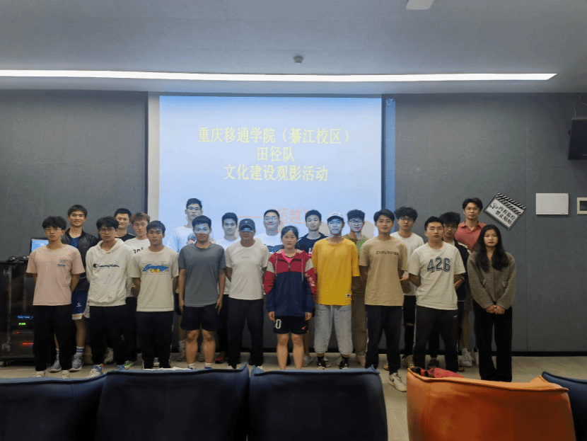 盼望着,盼望着,正所谓,“十年磨一剑,只为今朝”。在这个4月,经历了长久的艰苦训练,我们终于要迎来一年一度的校运会以及重庆市大学生田径运动会。但是,总是一直沉浸在训练中并不能完全提高我们的成绩,适当的放松也是必不可少的,4月14日,利用周五的休息时间,胡垚教练组织了一场田径队文化建设观影活动,通过看电影达到劳逸结合,增强队伍凝聚力的目的。